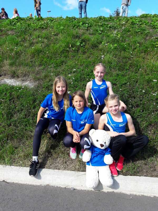 Henna, Jade, Milja ja Julia juoksivat 11-vuotiaiden tyttöjen pikaviestissä kuudenneksi.