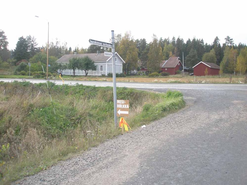 Tässä kohtaa käännytään ratapohjalta oikealle ja jatketaan kylätietä pitkin kohti Sontulaa.