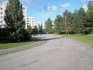Urheilukentältä lähdetään ja sinne palataan pitkin kerrostaloaluetta reunustavaa Rauhanummentietä.