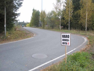 Puolimaratonin kääntöpaikka lähestyy. Tampere-Turku-tien (9-tie) alikulun jälkeen noin 300 metrin päässä on kääntöpaikka ja sen läheisyydessä huoltopiste.