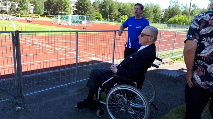 ![]() 88-vuotias seiväshyppääjälegenda Eeles Landström ilahdutti kisajärjestäjiä saapumalla henkilökohtaisesti seuraamaan nimikkokisojaan. Kuvat 1-7: Ari Viljanen. |