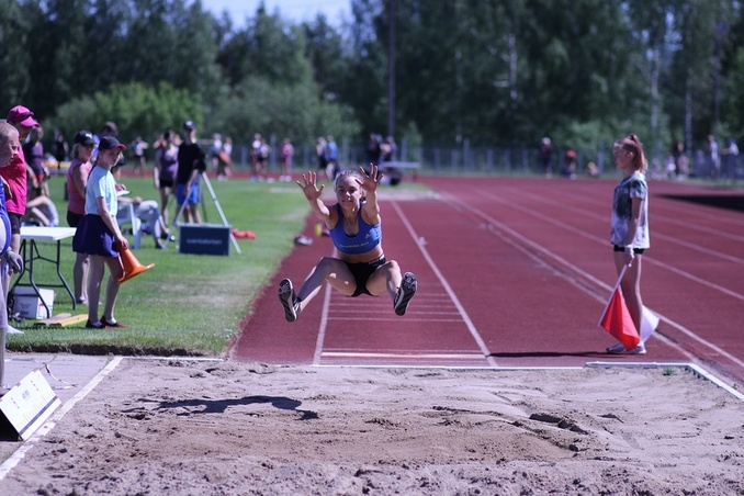 ![]() Janakkalan Janan Petra Kallionpää ponkaisi naisten pituushyppykilpailussa kolmannelle tilalle tuloksella 5,14. |