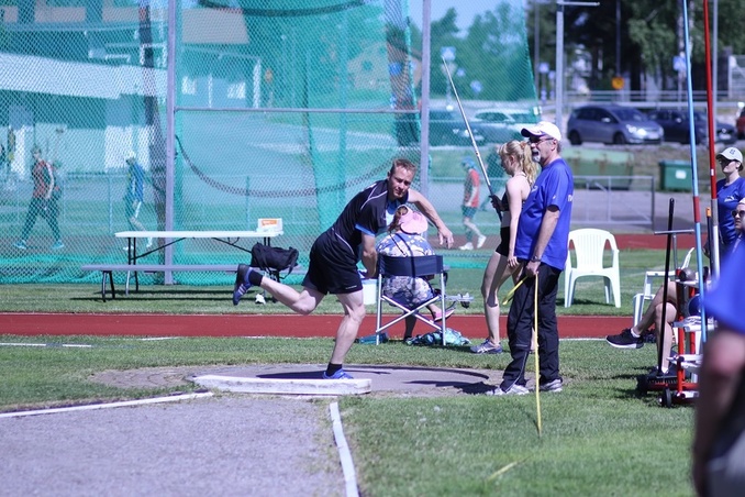 ![]() Toijalan Vauhdin Teemu Salminen pukkasi miesten kuulakisassa tuloksen 9,61, jolla irtosi kolmas sija. |