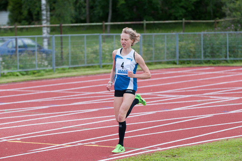 Klaara Leponiemi Lempäälän kisasta urakoi kaksi matkaa, tässä Klaara 3000 metrillä, jonka ainoa osanottaja hän oli. |