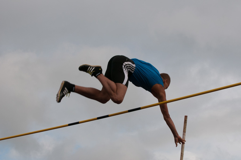 ![]() Olli Rannikko Nokian Urheilijoista keskittyy hyppyyn navakan tuulen keskellä. Olli sijoittui kisan kolmoseksi. |