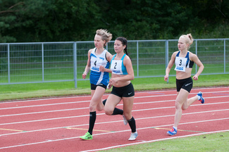 Naisten 800 metrin juoksu, kolmantena juoksemassa Klaara Leponiemi Lempäälän Kisasta. |