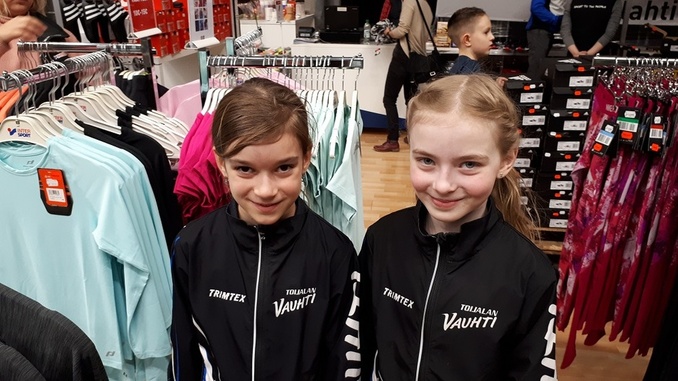 ![]() Natalia ja Milja tutustuivat kisojen lomassa urheilutekstiileihin, joita oli esillä ja myynnissä kisatapahtumassa. |