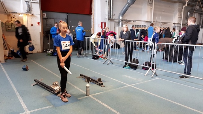 ![]() Miisa (rata 4) valmistautumassa T13-sarjan 60 metrin alkueriin. |