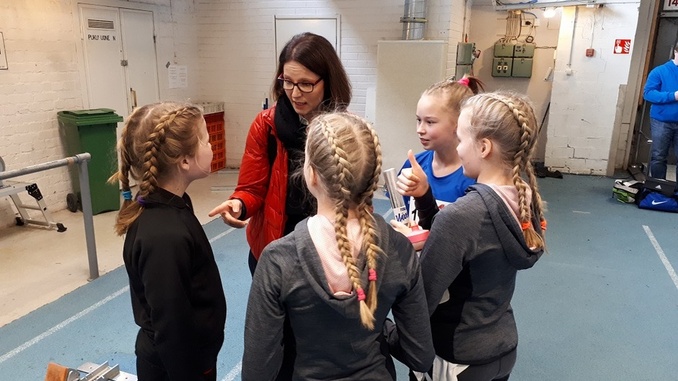 ![]() Tytöt harjoittelemassa vaihtoja. Kerta kerralta vaihdot sujuivat paremmin ja paremmin. |