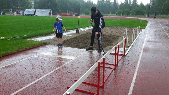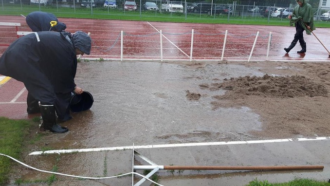 Ennätysmäisen kova ja pitkään kestänyt rankkasade laittoi kisajärjestäjät koetukselle, mutta lajipaikat saatiin kisakuntoon.