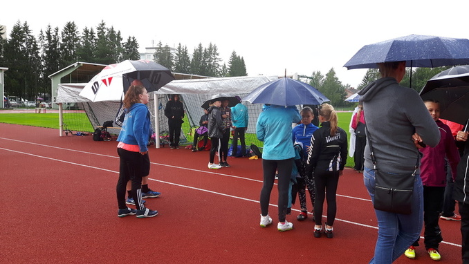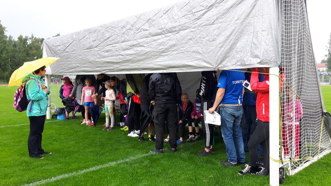 Kilpailijoille tehtiin kentälle sadesuojaa jalkapallomaaleista ja pressuista. Vastaavaa veden tuloa ei ollut ennen koettu.