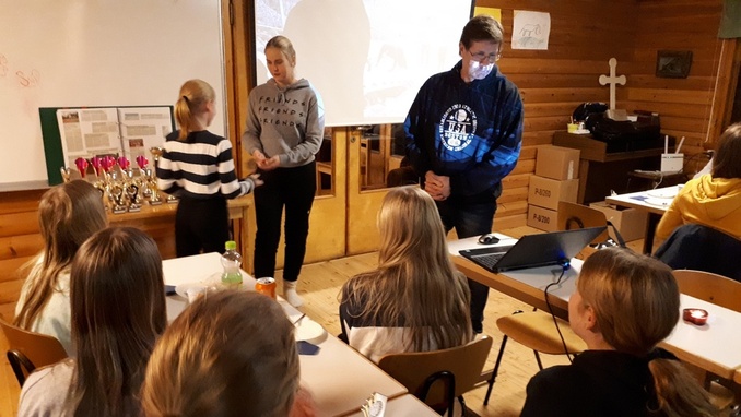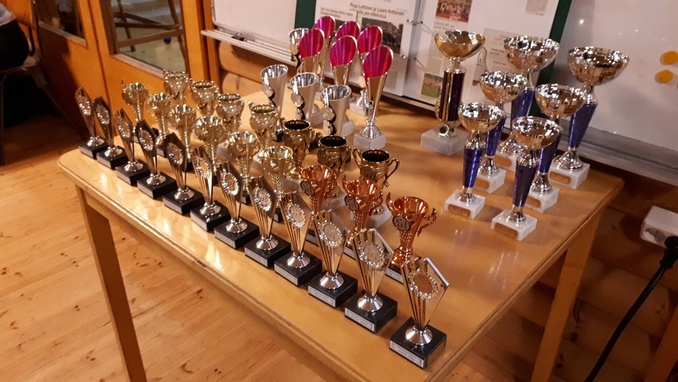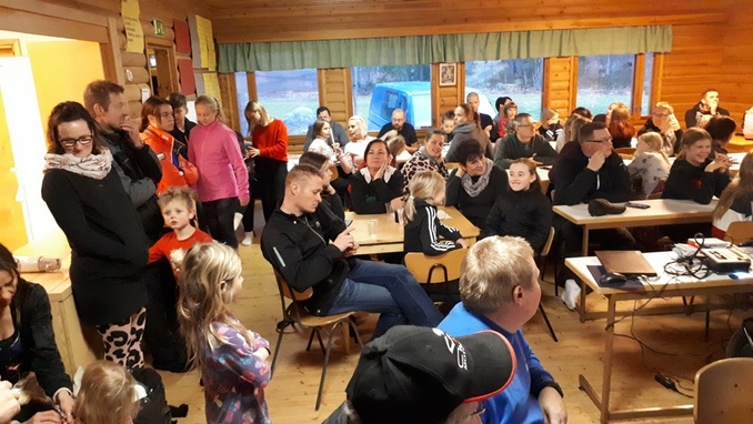 ![]() Palkintoja jaettiin paitsi kesän kilpailuista myös illanvieton kisailuista. Sariannen palkintokarkkikulholle muodostui välillä tungosta. |