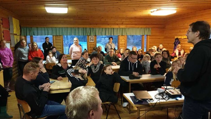 ![]() Kari piti yleisölle ajankohtaiskatsauksen niin menneestä kuin tulevasta kaudesta. Harjoitusten ohjaajat (seisomassa) saivat ansaitusti erikoiskiitokset ja taputukset urheilijoilta ja vanhemmilta. |