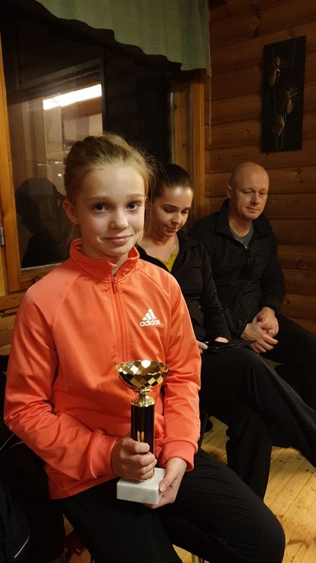 ![]() Julia Suolaniemi rohmusi kesällä 2019 piirinmestaruusmitalin jos toisenkin ja sijoittui useassa lajissa Suomen tilastojen kärkipäähän. Tästä Julia sai erityispalkinnon. Taustalla tärkeimmät kannustusjoukot eli vanhemmat. |