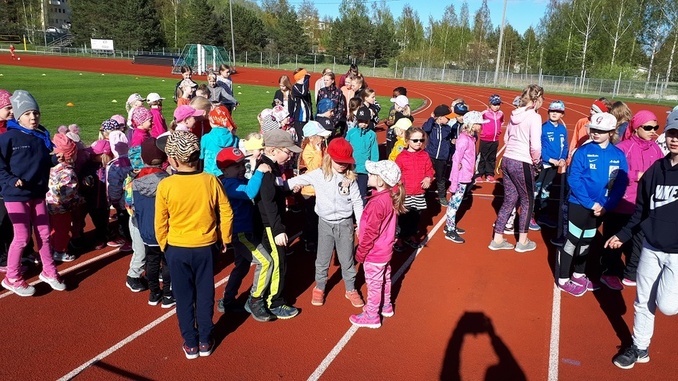 ![]() Lapsille oli infon aikana toimintaa kentällä - Tossujen ohjaaja Julia Talvitie vie lapsia letkassa pujotteluradalle. |