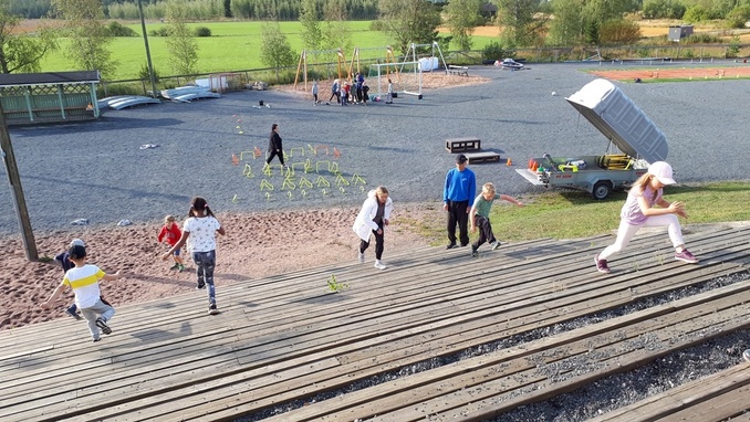 ![]() Sontulan koulun uusi lähiliikuntapaikka juoksuratoineen valmistui juuri parahiksi Voimapäivään. Toimintarasteilla juostiin, hypittiin, loikittiin ja heitettiin monipuolisesti sekä saatiin ravitsemistietoutta hauskan tekemisen hengessä. |