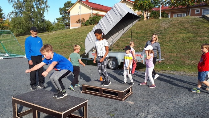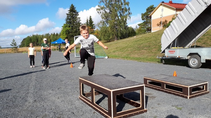 ![]() Ponnistusvoima tuli testatuksi pomppaamalla eri korkuisille laatikoille. |