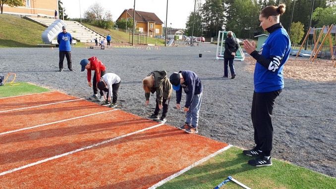 ![]() Reaktiolähtöjä otettiin aika haastavistakin lähtöasennoista. Lapset olivat tässä kekseliäitä ja ketteriä. |