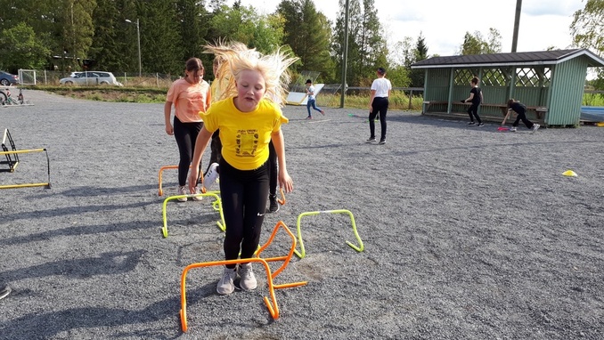![]() Ketteryysradalla juostiin ja hypittiin miniaitojen yli, puikkelehdittiin kartioiden lomitse ja kipitettiin juoksutikkaita pitkin. |
